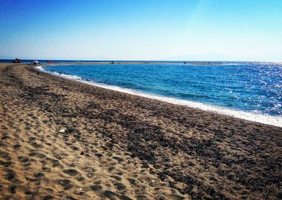 Το Ποσείδι έχει συνολικά τρεις παραλίες, με τις δυο εξ αυτών να είναι οργανωμένες. Η πιο μεγάλη σε μήκος και πλάτος, αλλά και η πιο γνωστή στο ευρύ κοινό είναι η παραλία των “Αιγαιοπελαγίτικων”, η οποία εκτείνεται στα δεξιά του ακρωτηρίου. Είναι αμμώδης με χαρακτηριστικά γαλάζια νερά. Η δεύτερη είναι η παραλία μπροστά από τον παραθεριστικό οικισμό του Ποσειδίου και είναι οργανωμένη από τα beach bars. Αυτή που ξεχωρίζει, ωστόσο, είναι η τρίτη παραλία που είναι γνωστή και ως “Μύτη”, μπροστά από τον φάρο του ακρωτηρίου. Πρόκειται για ένα φυσικό φαινόμενο εναπόθεσης άμμου στο ακρωτήρι το οποίο «πλάθεται» διαρκώς από τη θάλασσα και γι’ αυτόν τον λόγο έχει κάθε χρόνο διαφορετική μορφολογία.