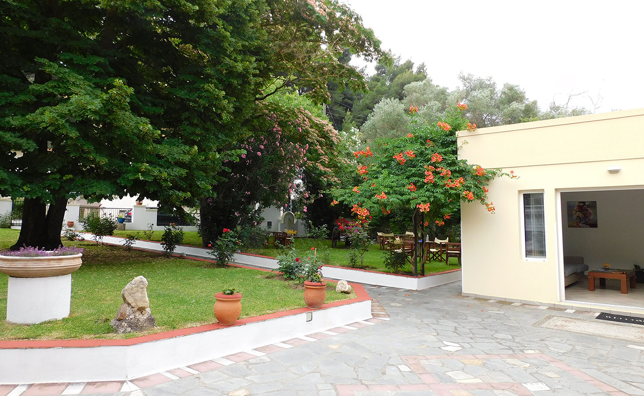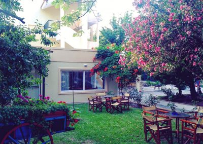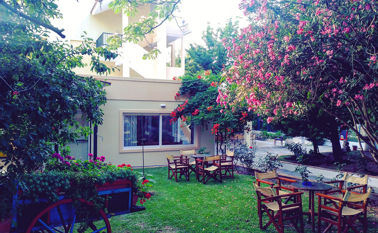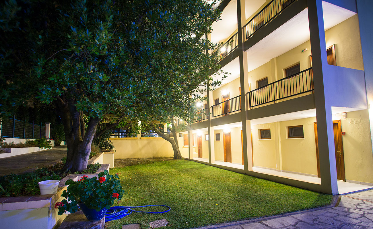 Όλα τα δωμάτια του ξενοδοχείου διαθέτουν κλιματισμό, ντουλάπα, τηλεόραση επίπεδης οθόνης, ιδιωτικό μπάνιο, κλινοσκεπάσματα, πετσέτες, ψυγείο και μεγάλο μπαλκόνι με θέα στον κήπο και το Αιγαίο Πέλαγος. Σε όλα τα δωμάτια υπάρχει μίνι μπαρ, καθώς και βραστήρας.