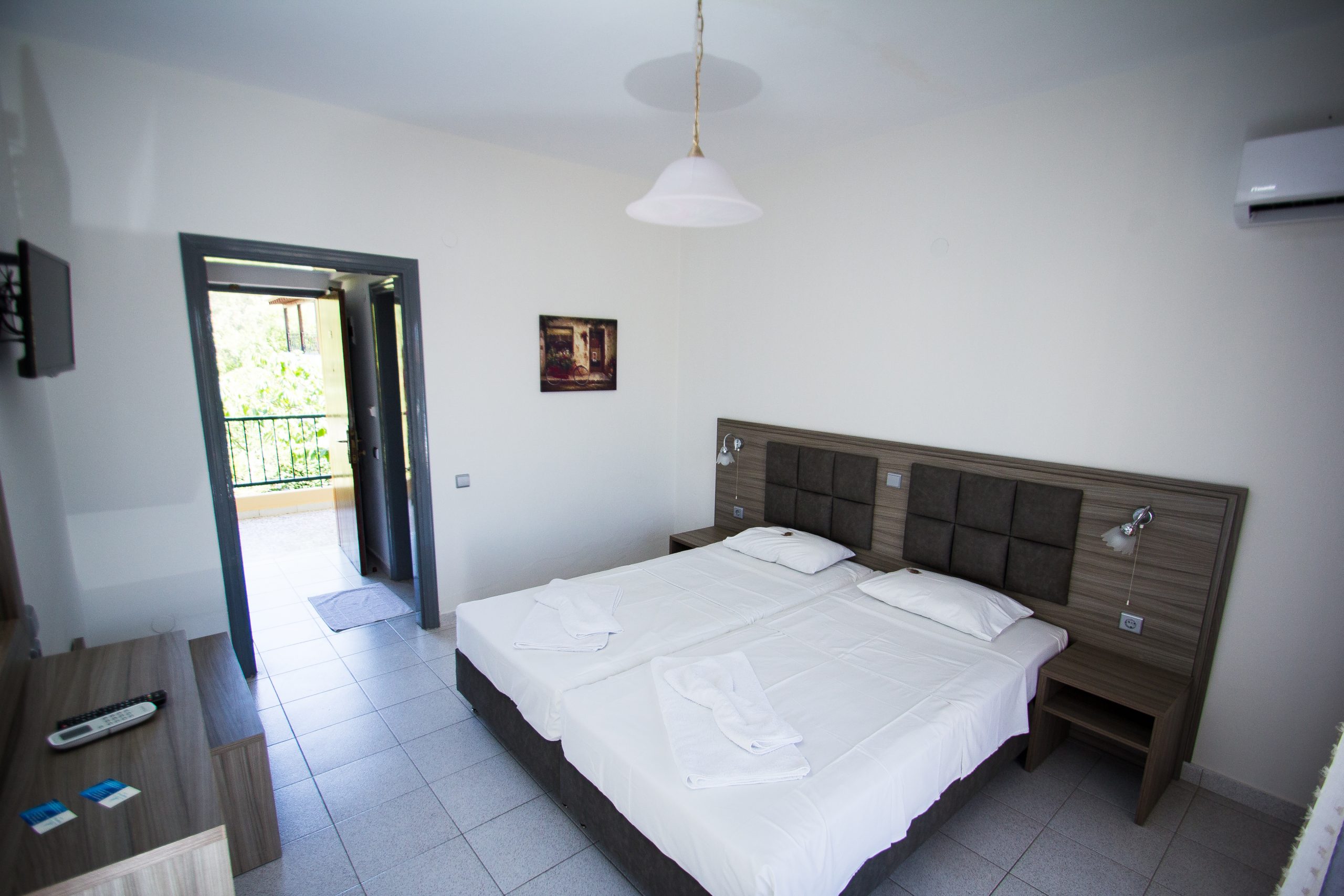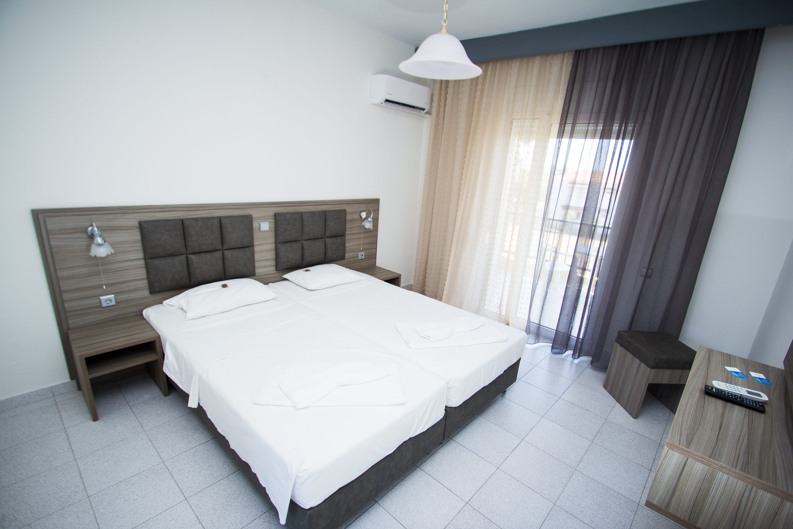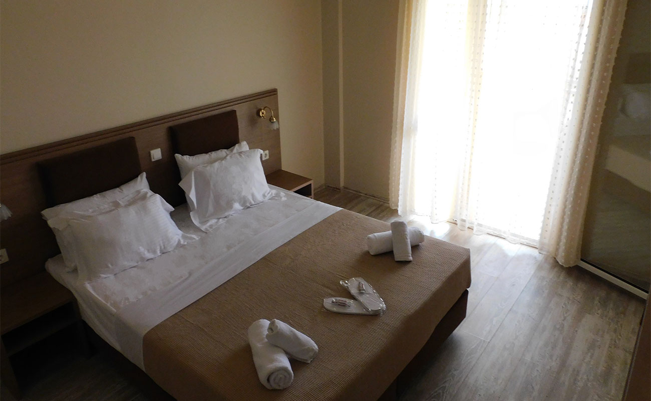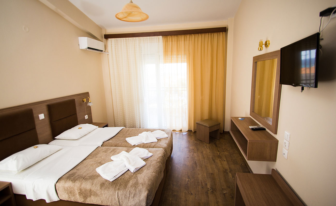 Αυτό το δίκλινο δωμάτιο (25m2) βρίσκεται στον 1ο όροφο και διαθέτει μπαλκόνι, κλιματισμό και ηλεκτρικό βραστήρα.